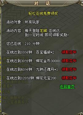 点击【天天在线免费领奖】,只要每天在线一小时,就可以领取1000绑元了(等级必须大于45)